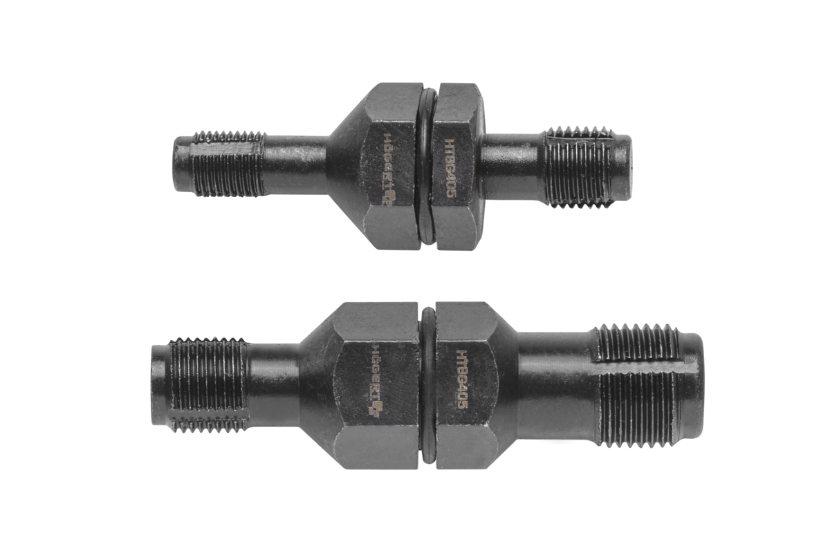 A set of two elements for cleaning and re-threading damaged spark plug threads. Mainly used in automotive workshops, for professional use.