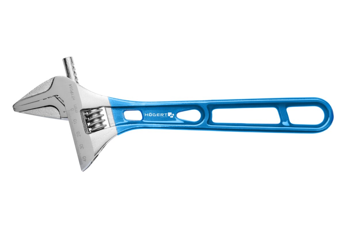 Adjustable wrench for plumbing and mechanical work. Wide applicability in maintenance and repairs activities.
