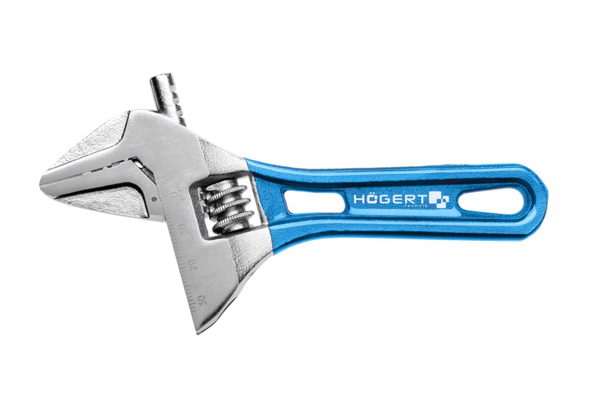 Adjustable wrench ideal for plumbing and mechanical work. Wide applicability in maintenance and repairs activities.