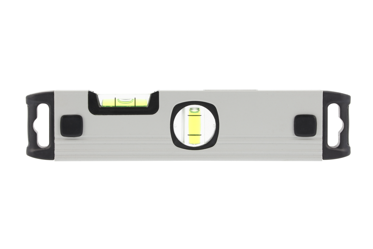 Aluminium level 23 cm, 3 bubble levels, vertical view