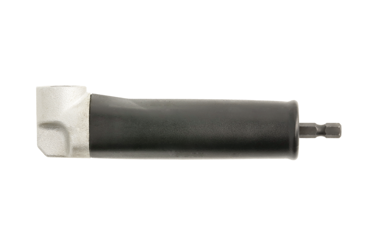 90-degree angle impact socket is designed for drilling, screwing and unscrewing in hard-to-reach spaces. It can work with 1/4" impact wrenches and screwdrivers.
