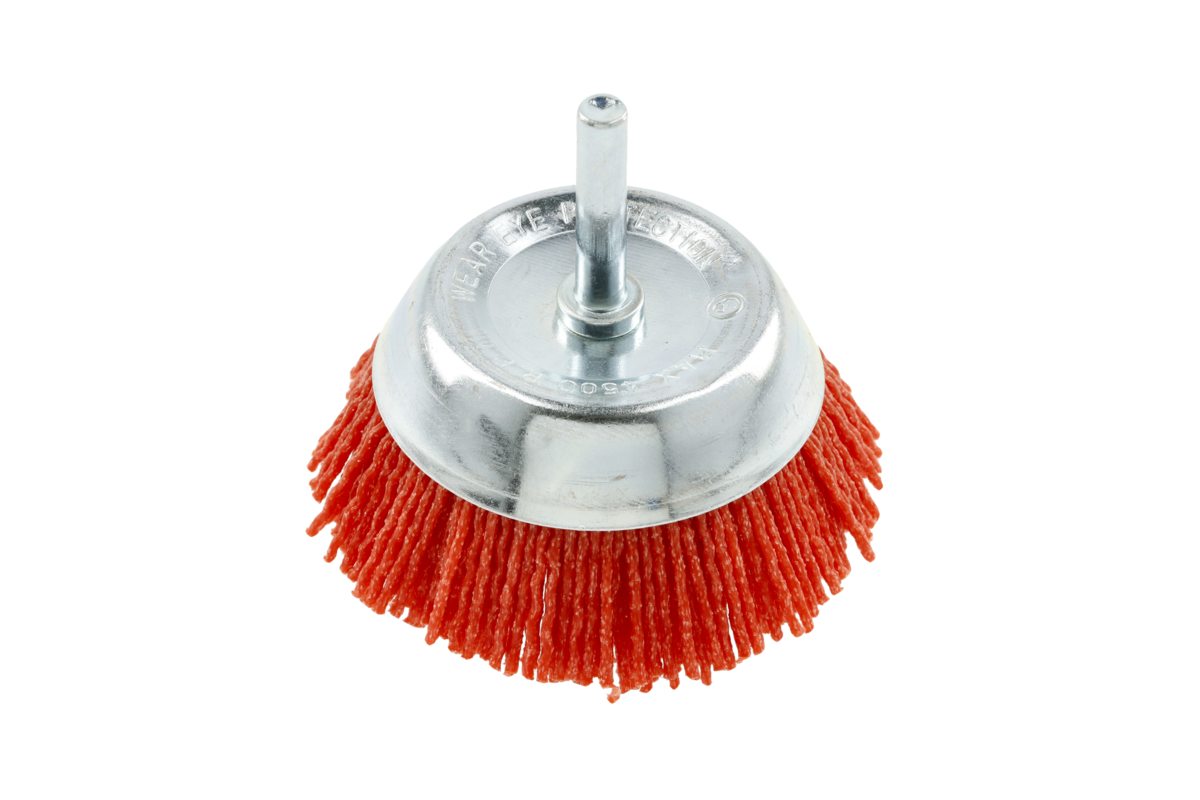 High-quality nylon cup brush with shaft. It enables even processing of flat surfaces, ensuring a precise and smooth finish.