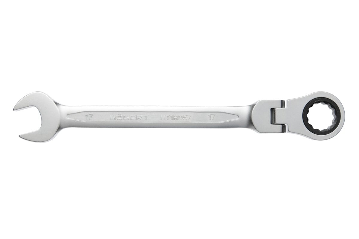 Combination ratchet spanners with flex head ideal for loosening and tightening threaded joints ended with hexagonal, decagonal or torx-type element. No need to take the spanner off the nut to make another turn.