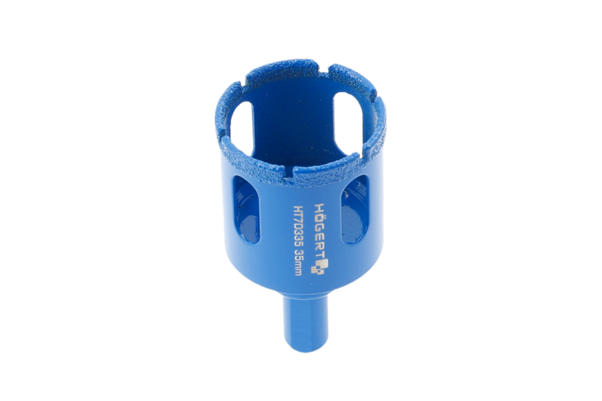 Diamond hole-saw drill bits are designed for boring in ceramic materials, such as glaze and terracotta. It is recommended to provide cooling, when drilling.