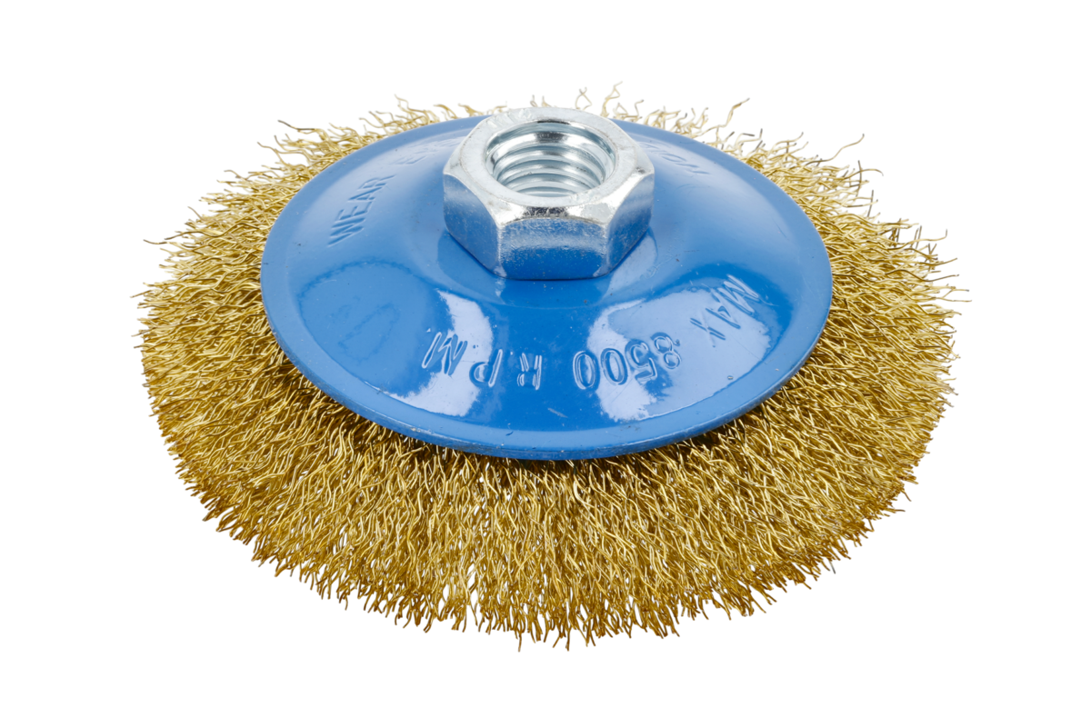 Wire brushes and rasps, Disc brushes, Knot wheel brush 100 mm, M14, brass wire 0, 3 mm, Tööriistad, Ehitusvahendid