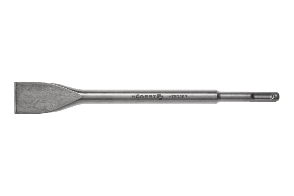 Chisel with flat point. Intended for repair and demolition work, such as crushing and loosening of concrete, removing of plaster, hammering of walls and tiles, and cutting of passages.