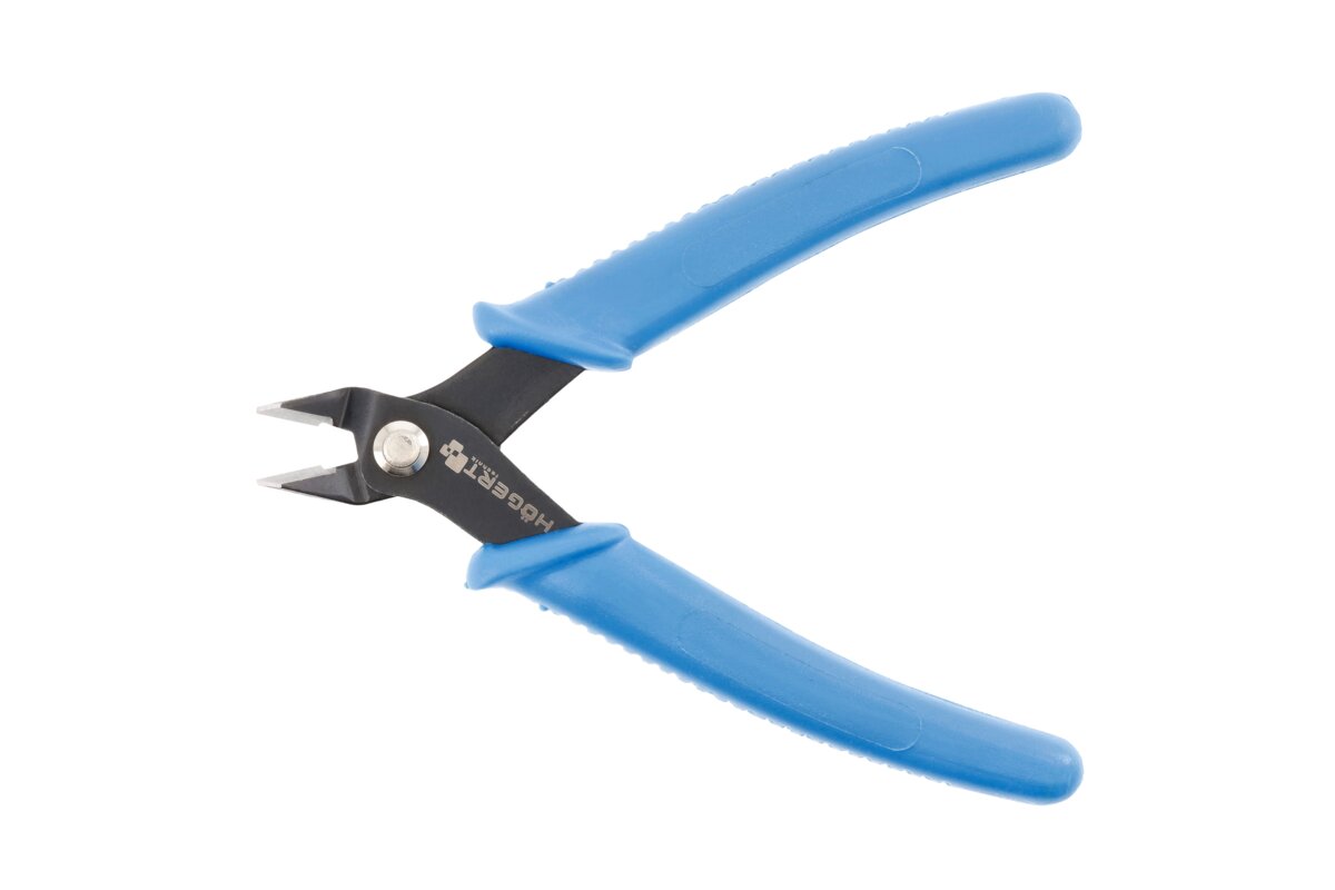 Pliers for cutting cables and single- and multi-core cables made of copper and aluminium, and for cutting the feet of electronic components during soldering on printed circuit boards. For work with low loads. Used in electronics, electrics, telecommunications and other assembly works.