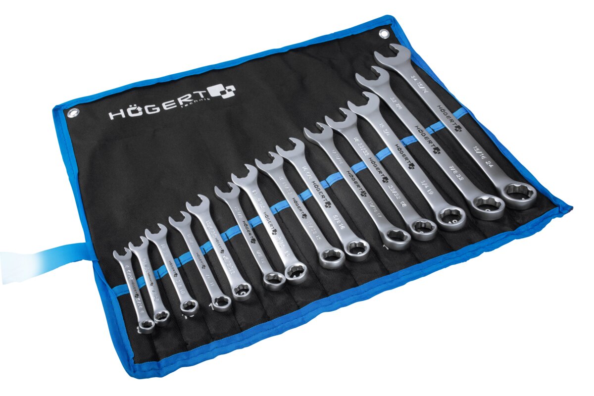 The set includes flat ring wrenches and a fabric sheet with separate pockets for each of them. The wrenches are made of high-quality, hard and durable chrome-vanadium steel, thanks to which they have high resistance to corrosion and rust formation. The keys are resistant to damage and de-chipping, so they can be used when working even in hard-to-reach places. The set includes a practical sheet with compartments for each key, making it easy to store, organize and quickly access the equipment you need.