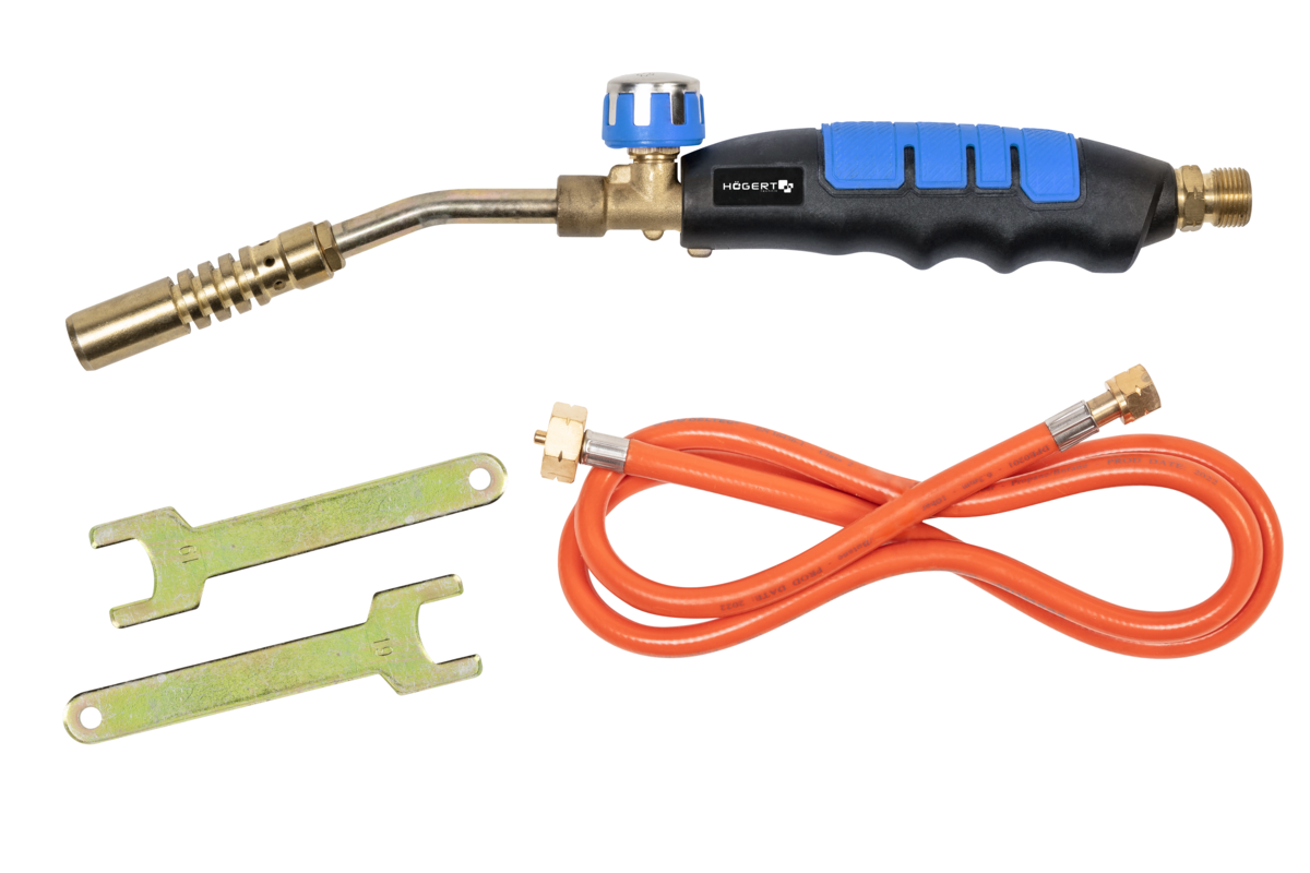 Professional set for gas soldering. The 2 kW soldering torch is equipped with a precise power regulator so that the soldering temperature can be adjusted to the type and size of the elements.