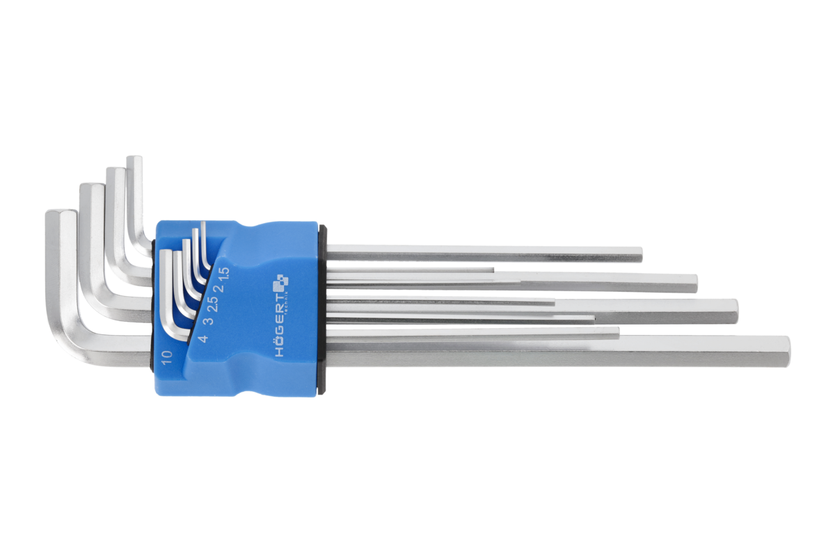 9-piece precision extra long hexagonal wrench set, especially designed for loosening and tightening screws in narrow spaces. A must-have for any workshop, renovation and construction works and in every household.
