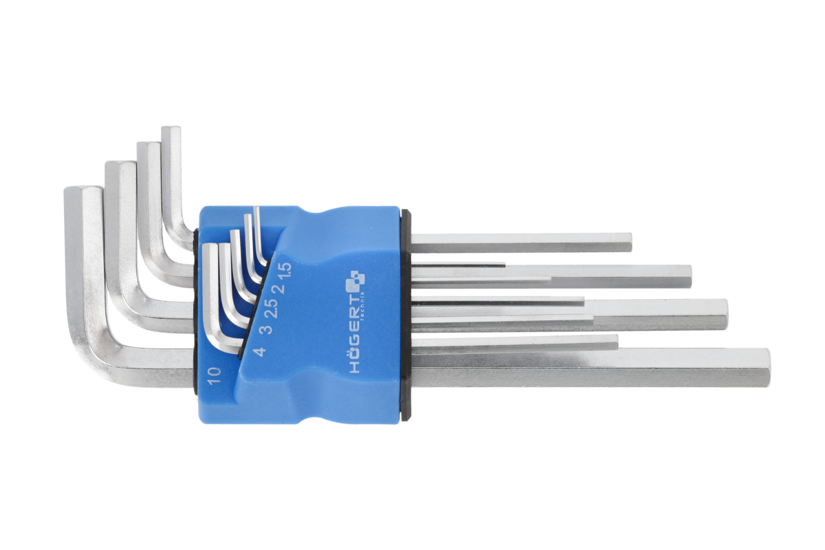 9-piece precision long hexagonal wrench set, especially designed for loosening and tightening screws in narrow spaces. A must-have for any workshop, renovation and construction works and in every household.