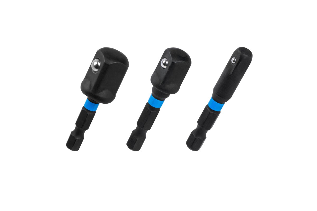 The Impact Adapter Kit allows you to quickly and conveniently connect mechanical sockets to power tools equipped with a 1/4" HEX handle. This is a practical solution for professionals and DIYers who need flexibility when working with different socket sizes in tools such as impact drivers or drill drivers.