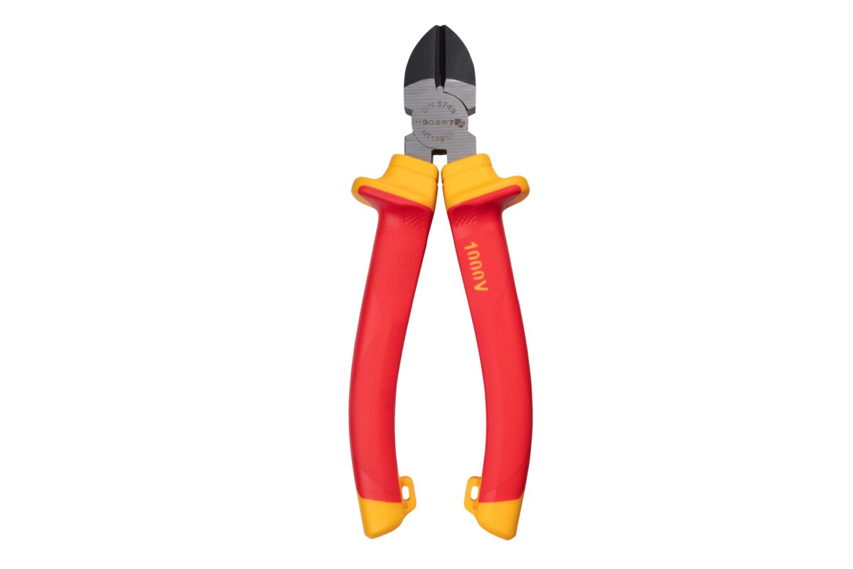 Side cutting pliers designed for cutting conductors and wires. Certified for working on live electrical wires, under medium and heavy loads. The shifted location of the connection significantly increases the clamping force of the jaws and reduces the strain on the user.