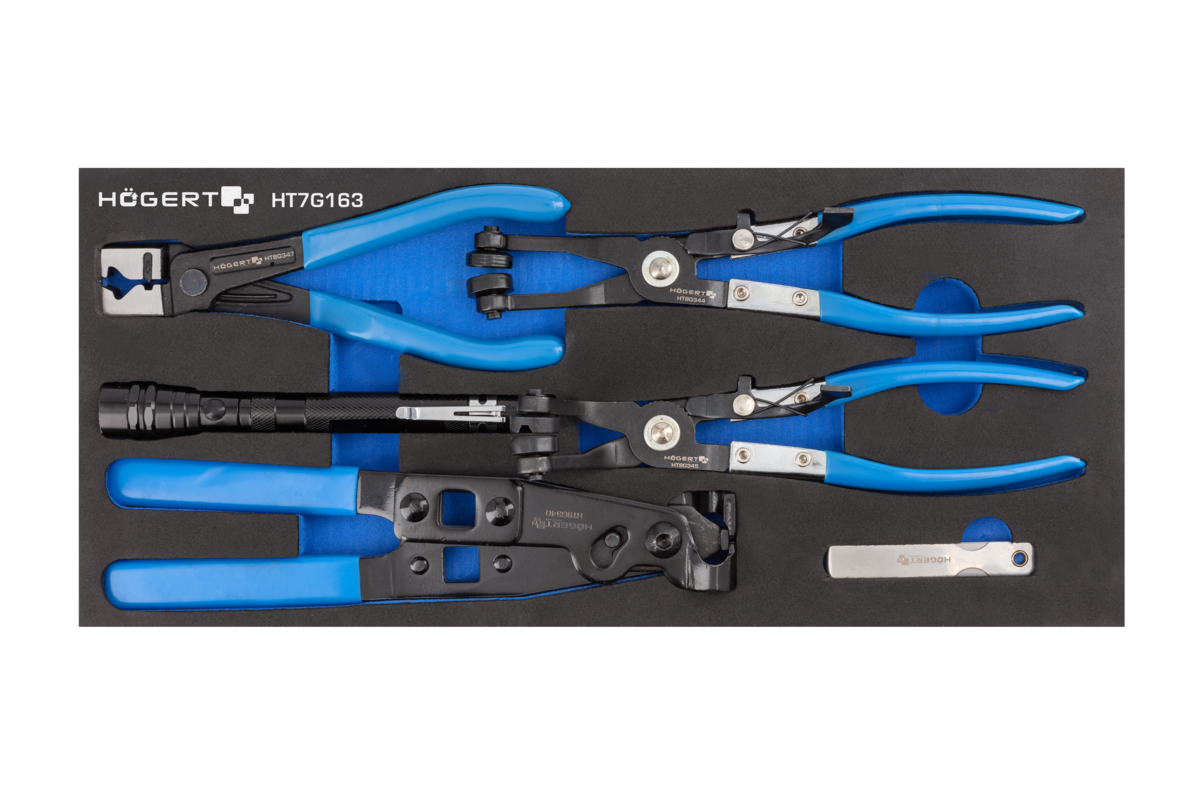 - 3 sizes of pliers for loosening and crimping reusable cable ties on rubber wires (175 mm – HT8G347, 230 mm – HT8G344, 45° – HT8G345);