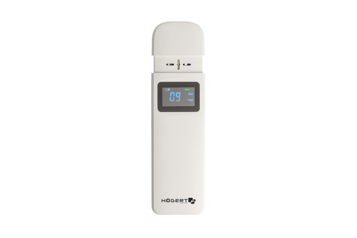 A compact device for quick and easy checking of the alcohol content in exhaled air.
