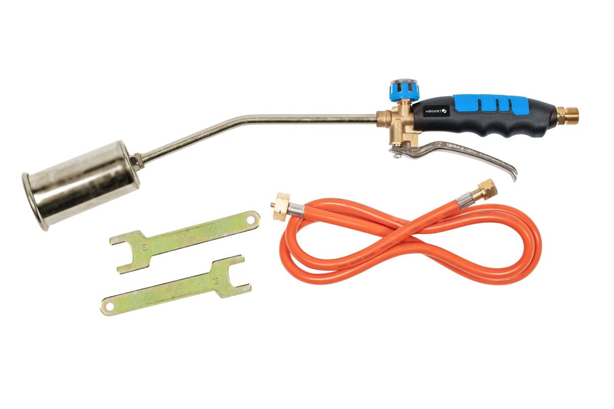 Professional set for gas soldering. The set includes gas burner, 1.5 m gas hose, mounting wrench. The soldering torch is equipped with a precise power regulator so that the soldering temperature can be adjusted to the type and size of the elements.