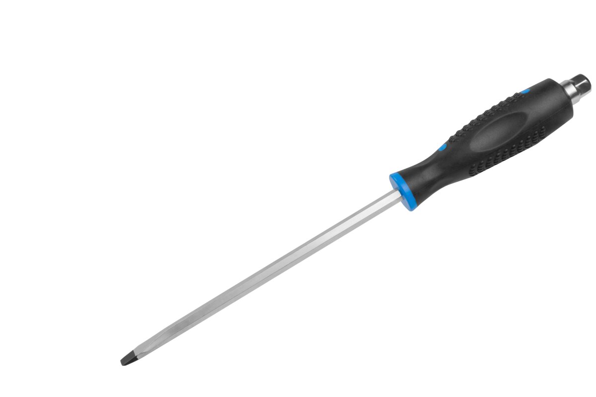 The metal tip of the screwdriver has a hexagonal shape that allows the use of a spanner to increase torque. This solution allows you to break the resistance of seized joints more effectively and gives you full control over the action.