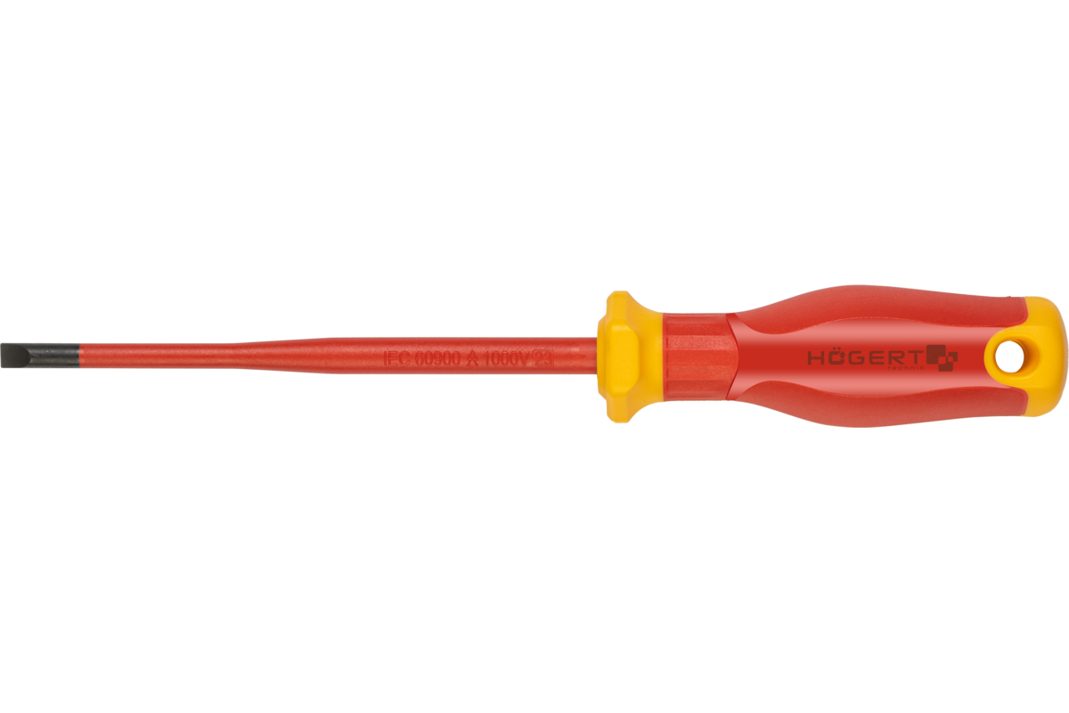 - product descriptionslotted screwdrivers, certified for working on live electrical wires at voltages of up to 1000 v. ground on both sides with a parallel converging profile. the thin shaft allows for working with deeply located screws and bolts.characteristics