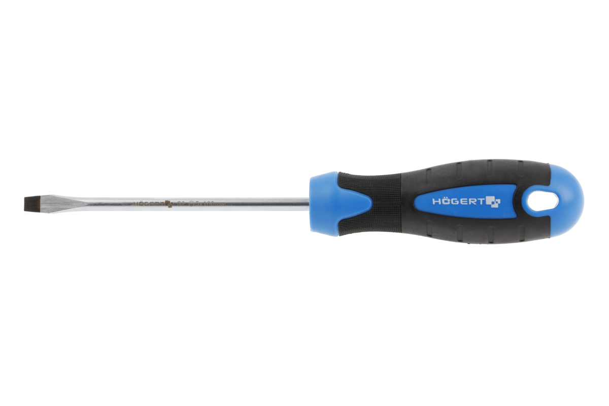 Screwdrivers for slotted screws. Have a single slot in the fastener head. Ground on both sides with a parallel converging profile.Characteristics• made of high quality S2 steel• durable and deformation resistant• the magnetic tip increasing work precision and comfort• bi-material handle with specially formed anti-slip surface for high speed torque transfer