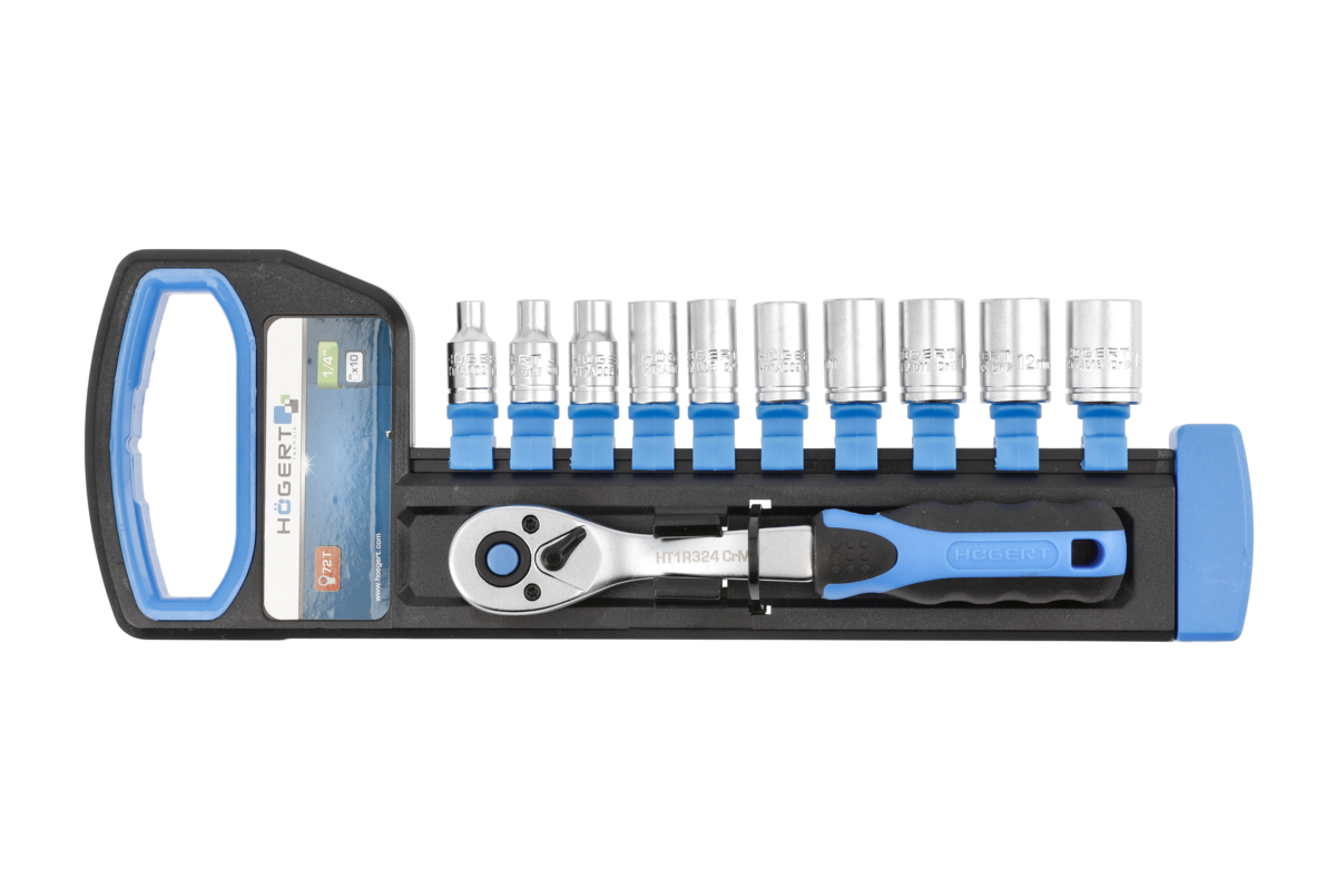 Sockets set with ratchet handle 1/4″, CrV steel, 72 T, 11 pcs