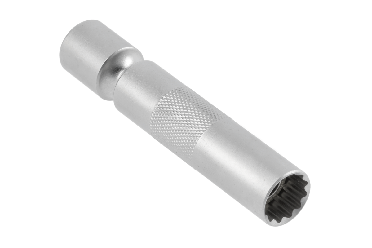 Socket with a joint is used to mount spark plugs in cylinder heads in hard to reach places. It enables smooth operation at different angles, used for 14 mm hexagonal and dodecagonal spark plugs. Magnet put inside holds the spark plug firmly, it makes work much easier and faster.