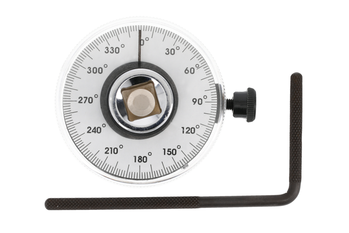 Torque angle gauge for the final tightening of bolts and nuts with a specified tension by measuring the angle of rotation, used when a tightening angle is specified above the recommended turning torque.