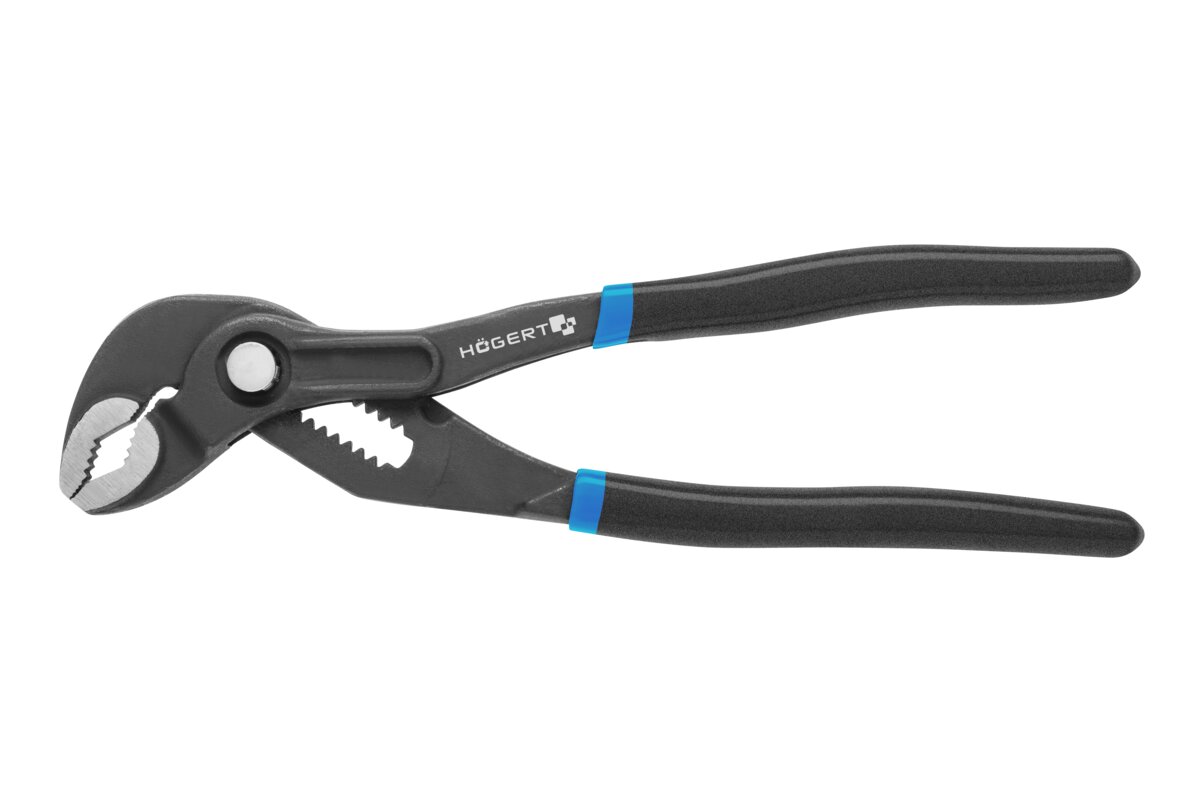 Pliers ideal for plumbing and assembly work. Precise and quick adjustment of jaws by pushing the button. Coated handles.