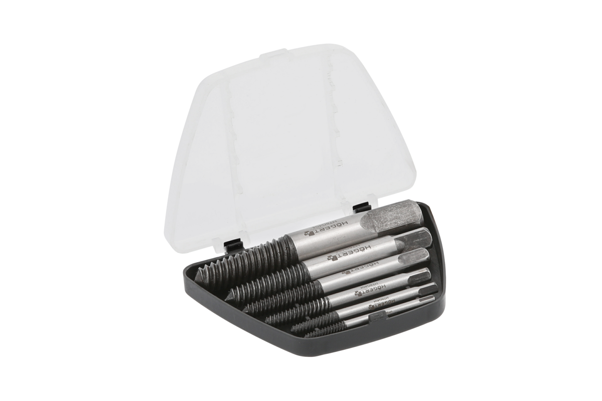 - 6 screw extractors: M3-M6, M6-M8, M8-M11, M11-M14, M14-M18, M18-M25.