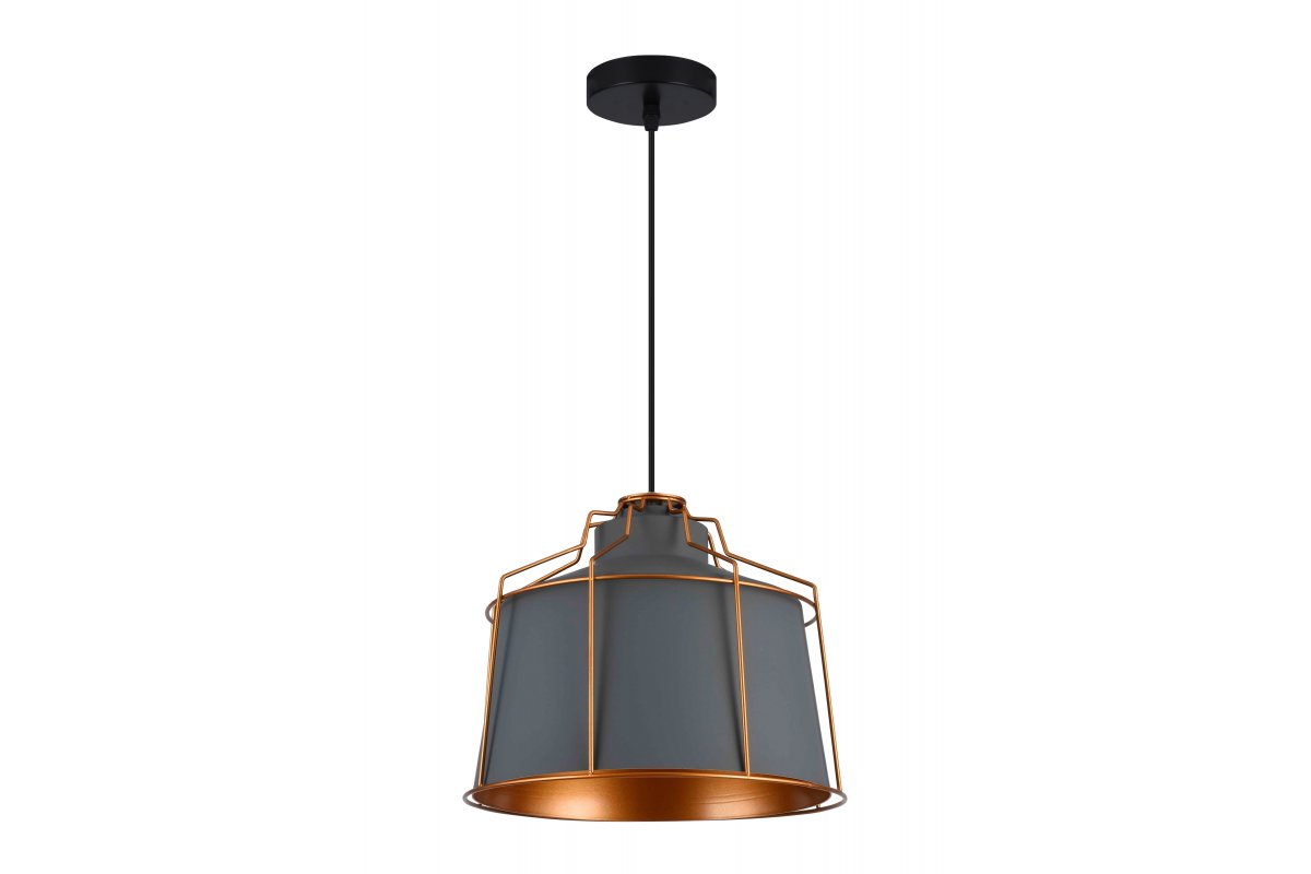 The effective design of this lamp is based on the principle of contrasts. A classic, slightly expanding downwards, grey lampshade is covered with a decorative golden frame.
