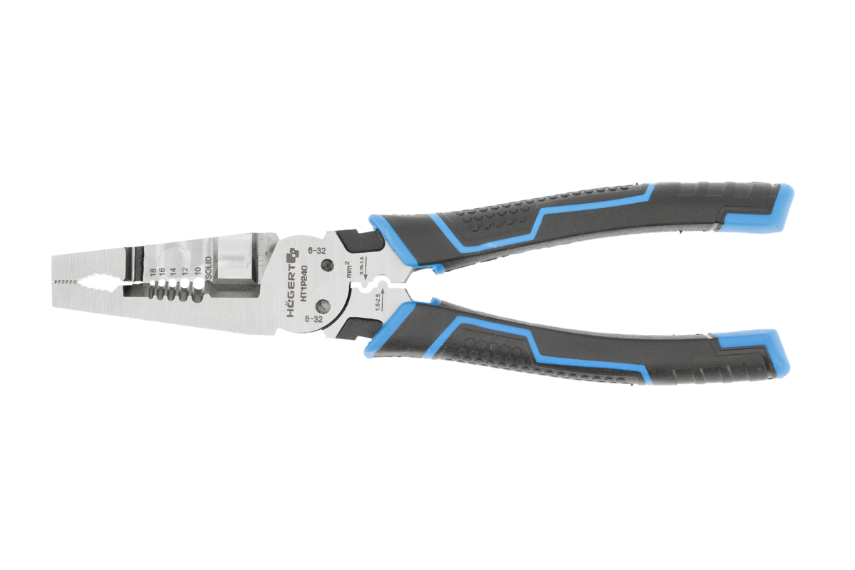 The milled tip of the pliers enables clamping soft materials, holding objects of up to 35 mm in diameter, squeezing, twisting, pulling and gripping.
