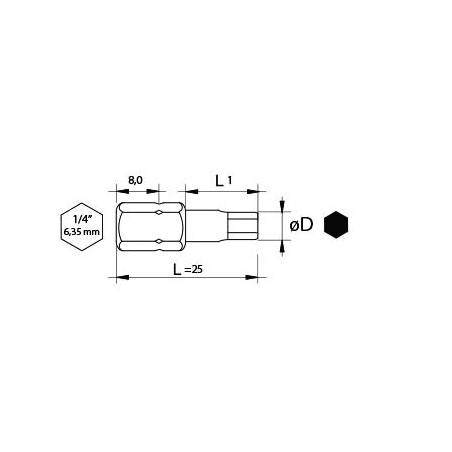 KOŃCÓWKA DO WKRĘTARKI HEX5/25mm