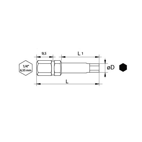 KOŃCÓWKA DO WKRĘTARKI HEX5/50mm