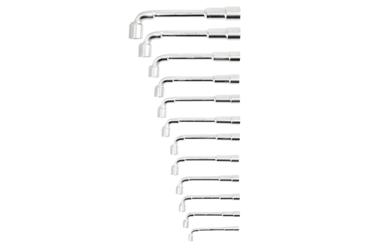 A practical and reliable set of "L" type socket spanners. Made from high quality chrome vanadium steel (CRV), the spanners offer unrivalled durability and wear resistance. The ergonomic 'L' shape provides a comfortable grip and efficient torque transfer, which is crucial when working with stubbornly locked or hard-to-reach bolts and nuts.