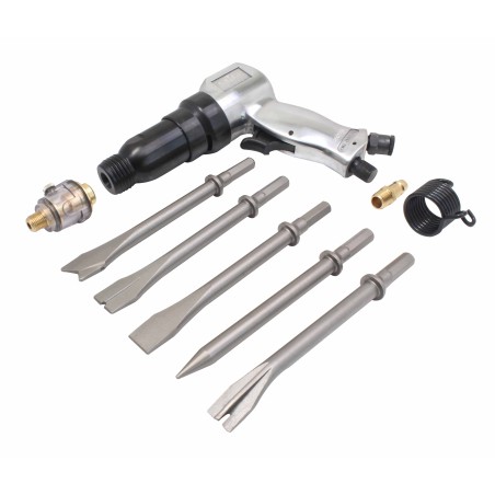 Long Stroke 1/4″ BSP Compressor Air Hammer 5 Chisel/ Cutter Set & Oiler
