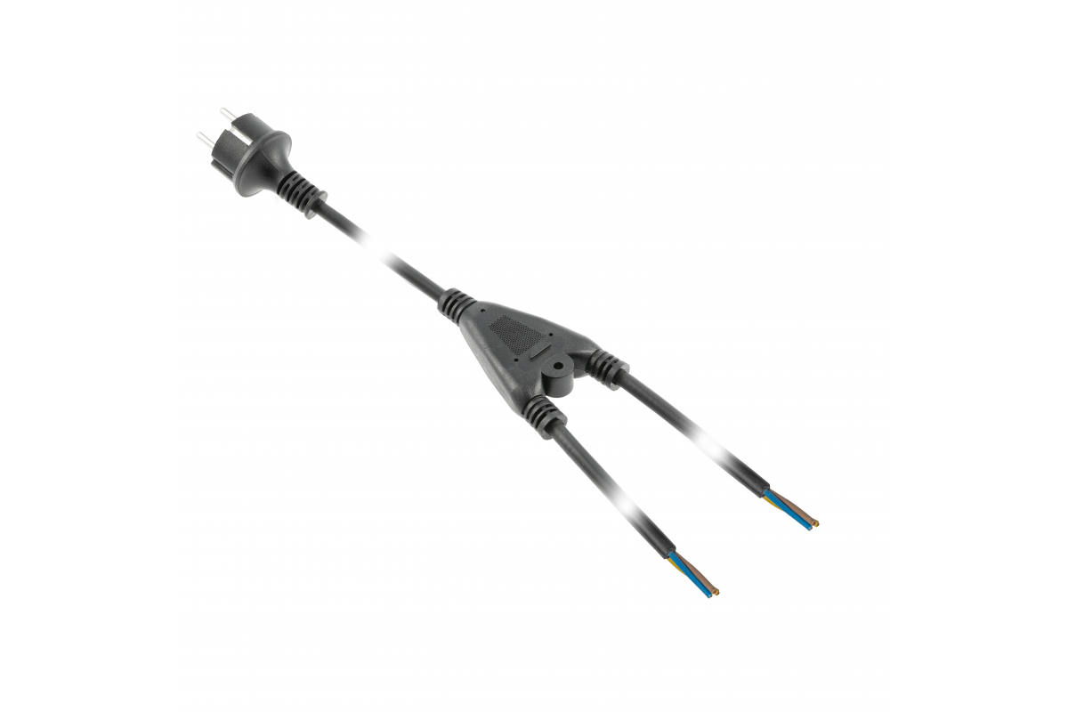 Power cable splitter (double) with Euro plug, rubber, 2 m, 3x1mm2, black