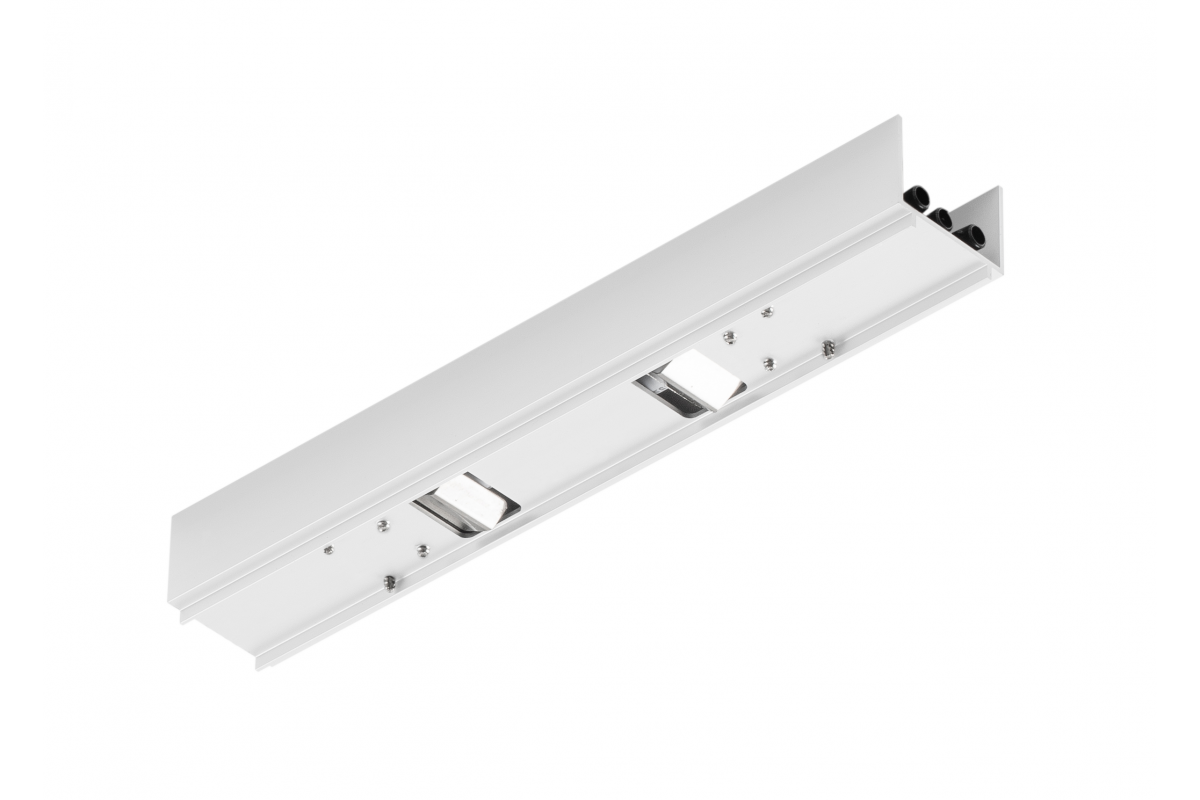 The straight connector for OMEGA luminaires allows the luminaires to be connected in a long line of light, fulfilling both mechanical and electrical functions. Thanks to the conduction of electricity, the power supply of one luminaire in line is enough to power the entire installation, which simplifies installation and ensures an aesthetic finish.