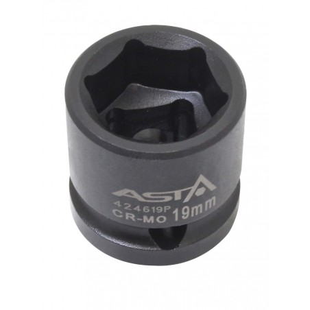 Very short ASTA 6-point socket made of high-quality Cr-Mo steel intended for impact use.